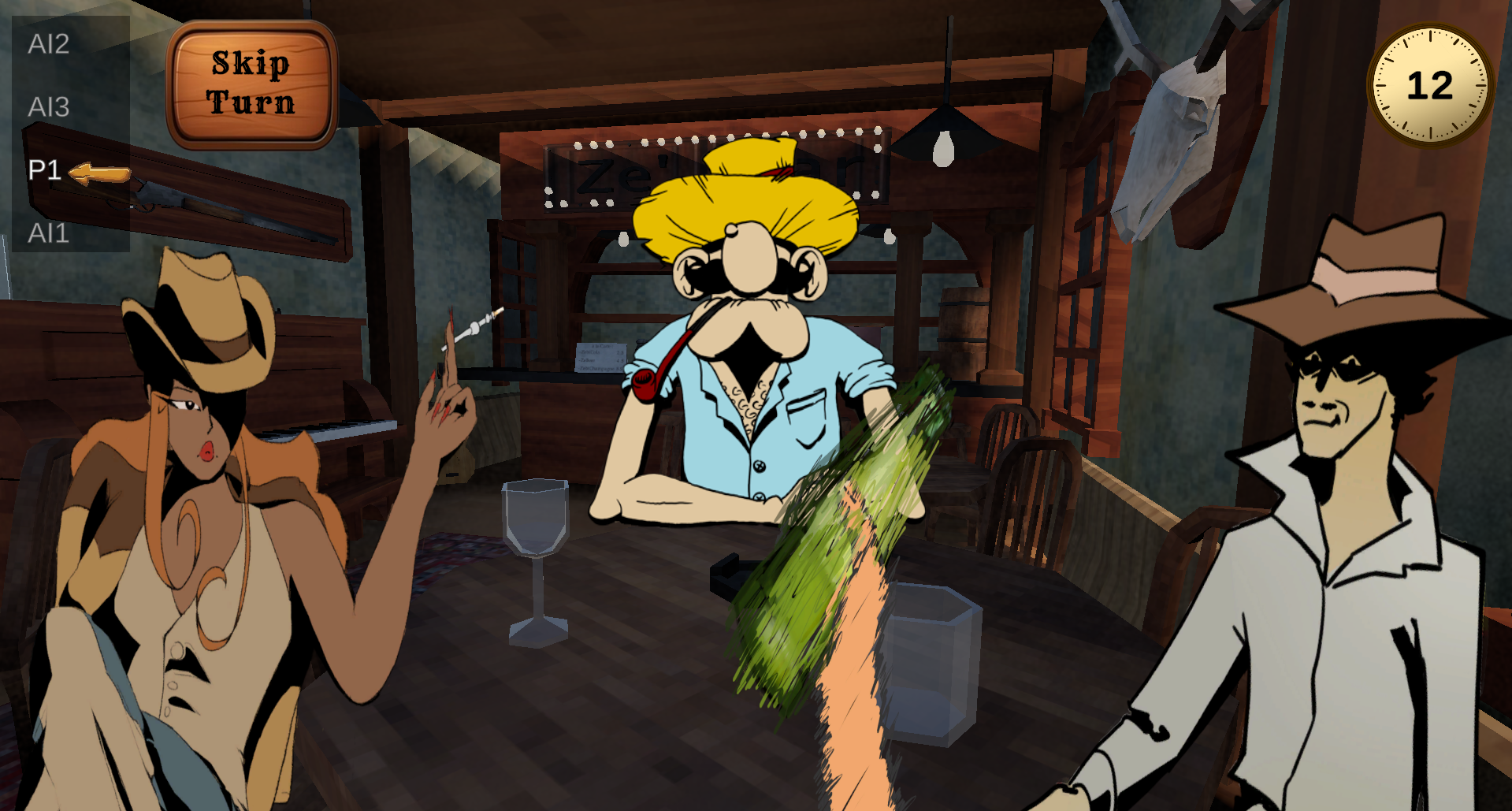 In this 2D/3D turn-based game, play as a cowboy in a saloon.